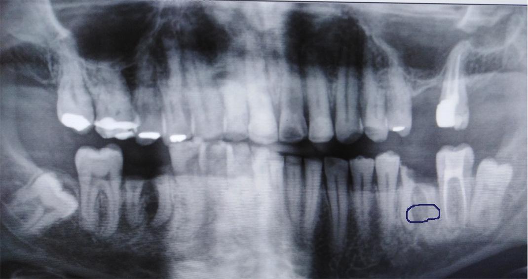 Ik zat te kijken naar de foto en zag niets geen wortel kanaal ontsteking .Zoals de kaakchirurg aan de weledelgeleerde tandarts schreef in zijn mail